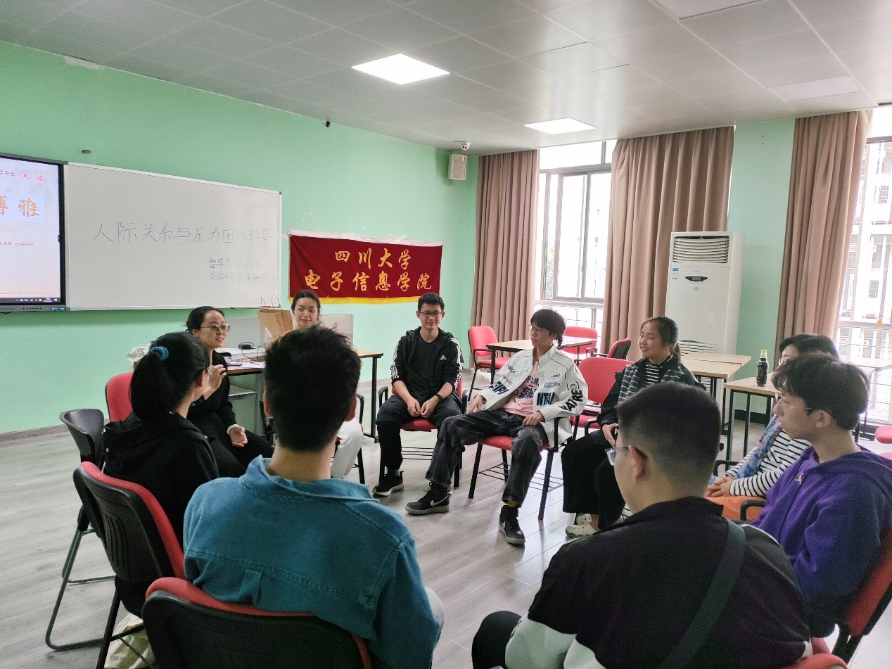2023年4月22日下午15:00-17:00,太阳集团tyc9728二级心理辅导站——电子“心晴e站”在ok138cn太阳集团江安校区综合楼B304开展了“人际关系与压力”团体辅导第一次辅导。本次团体辅导由ok138cn太阳集团,太阳集团tyc9728,44118太阳成城集团2020级辅导员、二级心理辅导站业务负责人何惠老师担任带领者,ok138cn太阳集团心理健康中心董薇老师担任辅导员,二级心理辅导站学生干部陈洁为活动负责人,本科及研究生十位同学参与了此次活动。