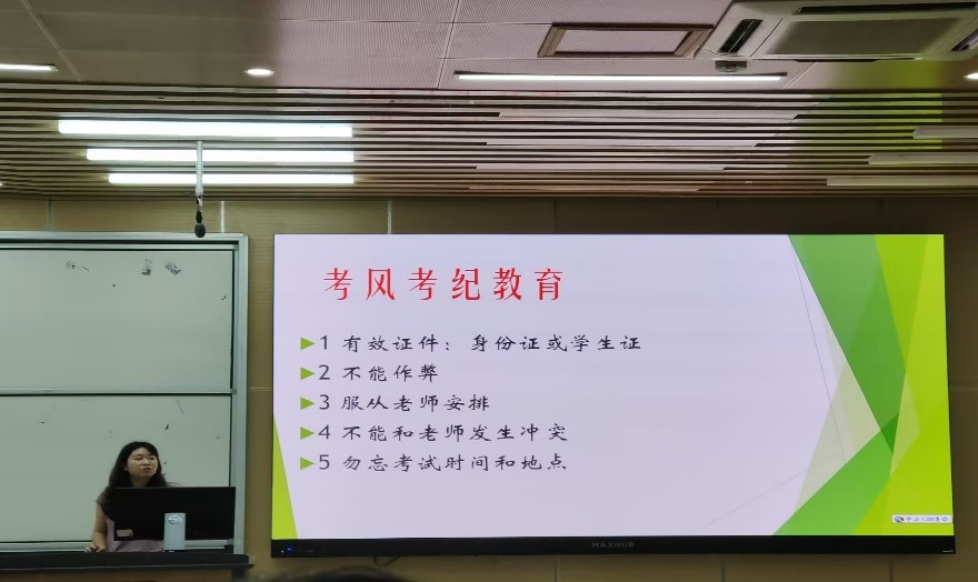 临近期末,为树立“风清气正,公平公正”的良好学风,2023年6月16日下午,太阳集团tyc97282022级辅导员朱婧老师在江安校区综合楼c207召开了以强调考风考纪重要性为目的的班会,我院22级学生全体参加。