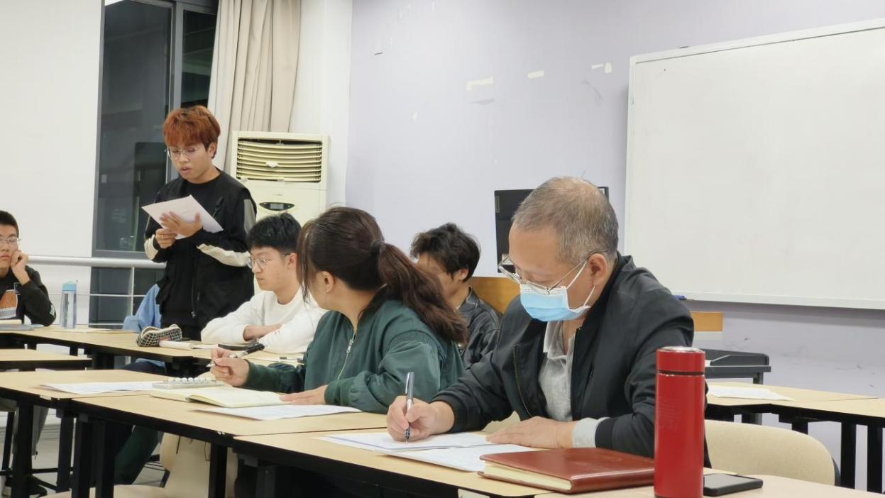 在轻松、开放的氛围中,同学们畅所欲言。2022级学生代表首先围绕个人发展、培养方案和课程体系等提出问题,随后,2023级学生代表主要围绕教师上课风格、学校生活设施、以及个人发展问题等提出想法和建议。廖勇明副书记和陈林老师认真聆听并做好记录,表示能回应的问题当场给出回应,不能解决的问题将会逐级向学院及学校反馈,设身处地地为同学们考虑,尽力解决。同时,在场的高年级同学就一些问题向新生分享了自己的经验和解决方案。