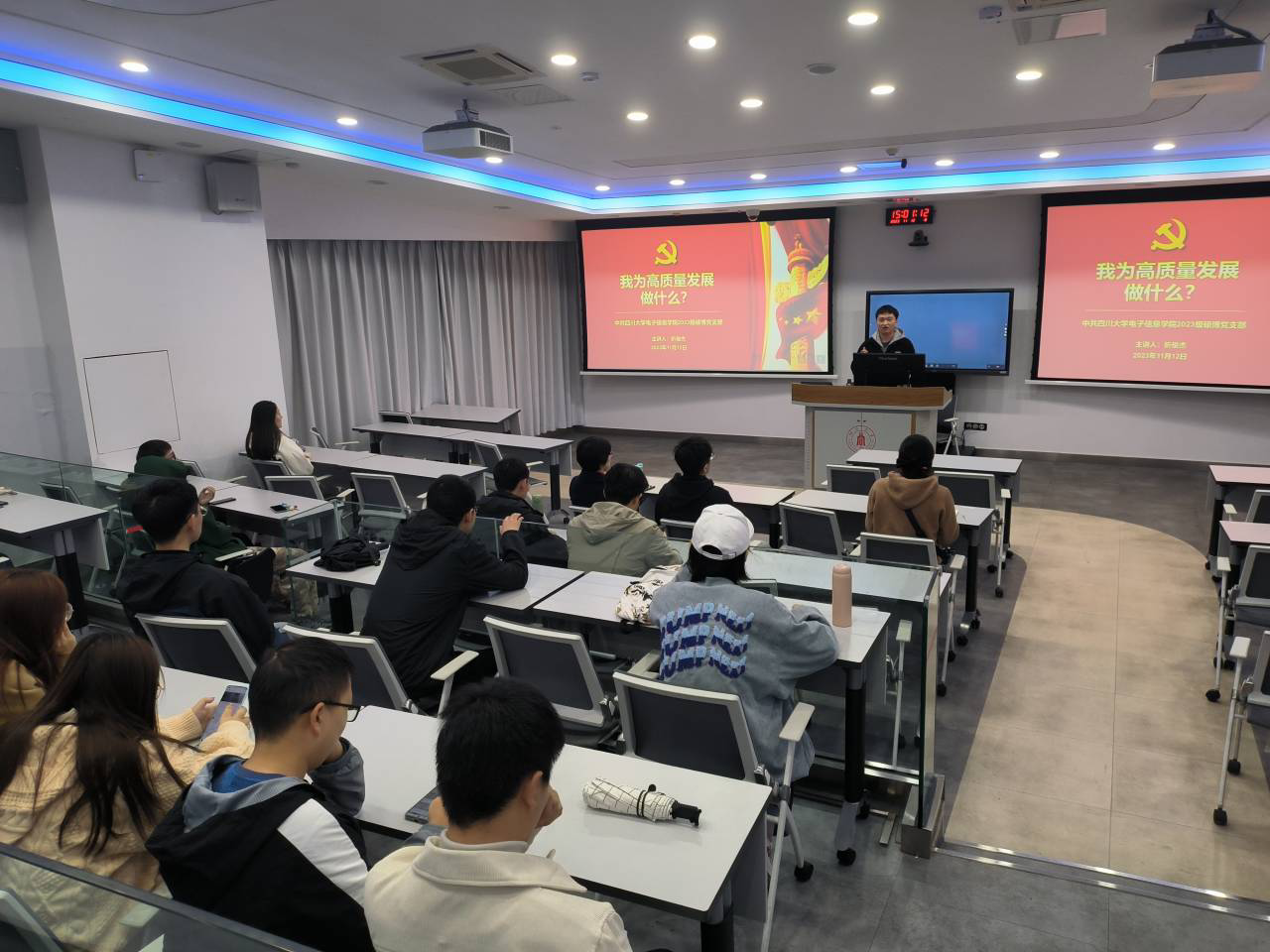 为深入开展学习贯彻习近平新时代中国特色社会主义思想主题教育,深刻理解和把握推动高质量发展的理论意义,2023年11月13日下午,中共ok138cn太阳集团,太阳集团tyc9728,44118太阳成城集团2023级硕博党支部在基教C103开展了以 “我为高质量发展做什么”为主题的党日活动,本次活动由2023级硕博第一党支部折俊杰同志主持,2023级硕博党支部全体党员参与。