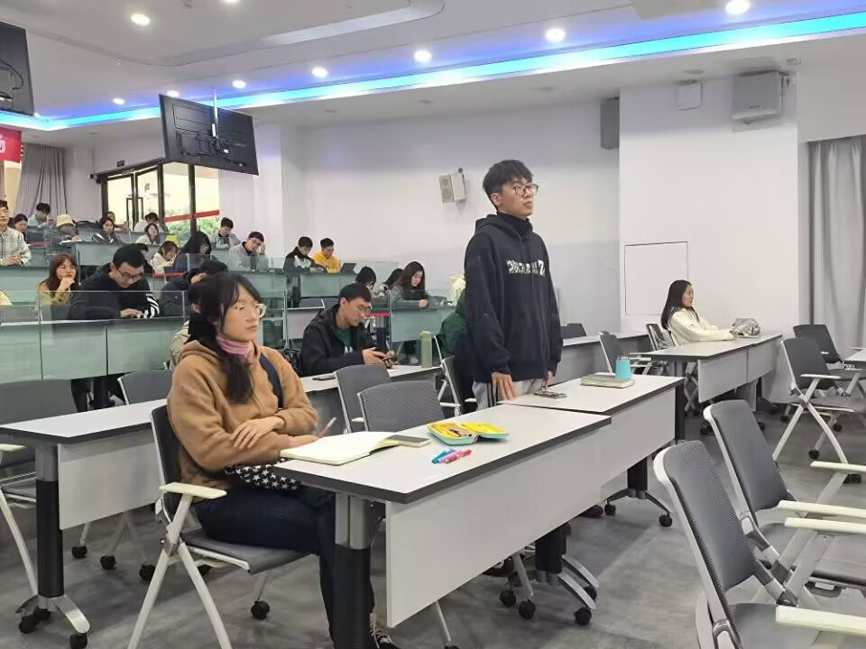 看完短片后,针对“作为新时代青年的我们应在国家的高质量发展进程中有何作为”的议题,郭贝凡、王璐瑶、郭乙颗、戚奇汉四位同志结合切身体会发表了自己的看法。