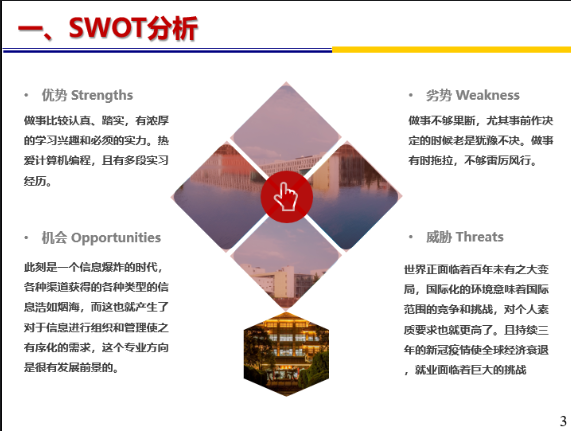 学院本科生和研究生积极响应赛事,参加本次比赛成长赛道的共有231名选手,就业赛道共有218名选手。各选手在进行比赛时,结合自身情况,在系统内上传自己的生涯发展报告以及展示自己生涯发展的PPT演示文稿,充分发挥出个人主观能动性。选手们根据自己的职业价值观,综合分析社会环境、家庭环境、学校环境等各方面的因素,在明确的自我分析、目标分析基础上,确立了一个符合自己现实情况的生涯成长规划方案。整个比赛采取线上评分的方式,每个赛道分别3位评委。评委们根据选手的生涯发展报告以及生涯发展演示文稿按照首届全国大学生职业规划大赛ok138cn太阳集团校赛评审标准严格进行评分和点评。评委老师表示选手们的职业生涯规划设计作品整体结构完整、逻辑清晰、职业生涯目标制定合理贴切,得到了评委们的一致好评。