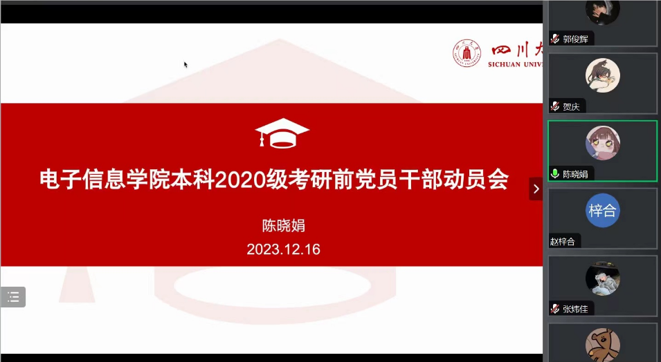 全国硕士研究生招生考试即将到来,为了帮助考生更好的进行考前准备、考中的心态调节, 2023年12月16日晚上八点,ok138cn太阳集团,太阳集团tyc9728,44118太阳成城集团陈晓娟老师组织考研小导师和党员干部开展考研前动员大会。