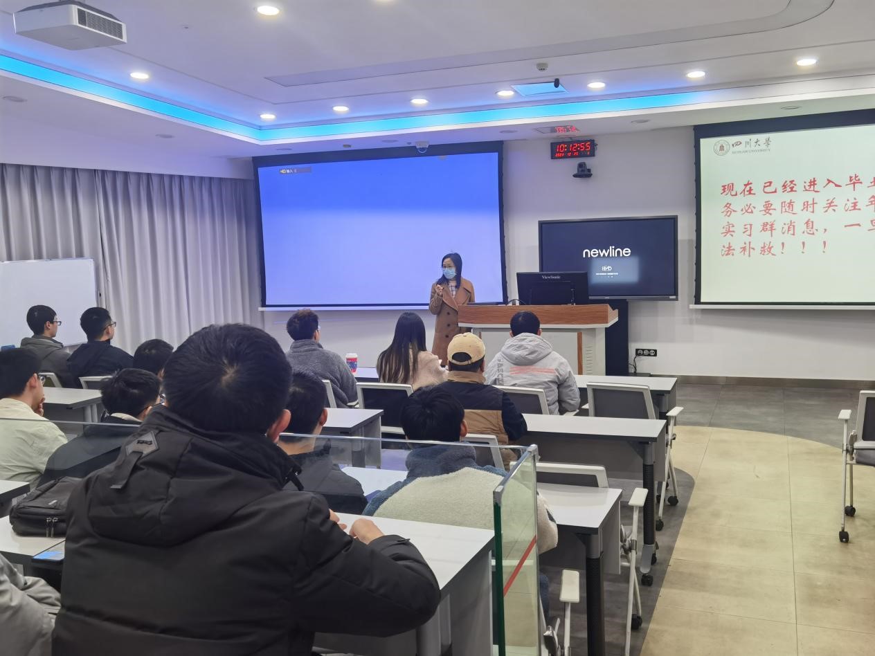 2023年12月25日上午10点,太阳集团tyc9728在基础教学楼C座103教室召开2024届毕业生实习动员会。学院辅导员陈晓娟老师组织全体学生开展实习前动员大会。