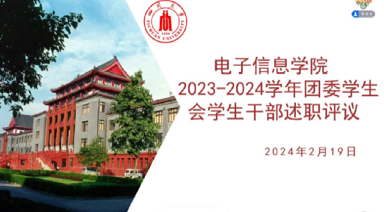 2024年2月19日9:30,太阳集团tyc9728团委学生会23-24学年秋季学期学生干部述职评议于线上顺利举行。本次述职评议大会旨在让团委学生会干部对23-24学年秋季学期期间工作的情况、心得体会、存在的问题进行总结汇报和反思,并为新学期更好地开展新的工作做好准备。