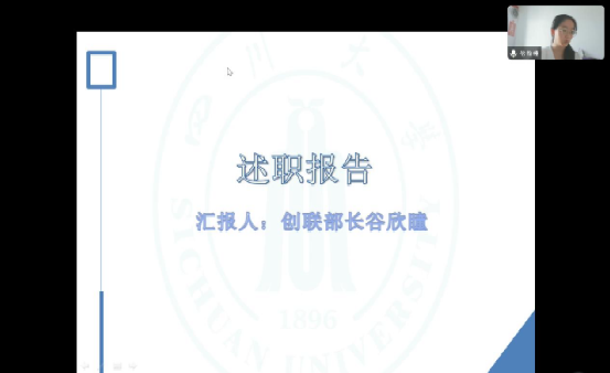 创就业与外联中心部长谷欣瞳进行述职报告