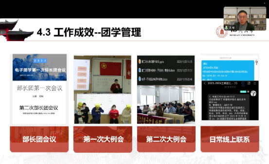 上午九点三十分,述职评议大会正式开始,首先是主席团进行工作汇报。团委学生副书记李云天、团委学生副书记兰洋、学生会主席王裕、学生会副主席修澜格、学生会副主席钟欣依次从思想引领、学习情况、工作情况、工作成效、未来工作计划这些方面对自己的工作进行总结并提出了新的思考。