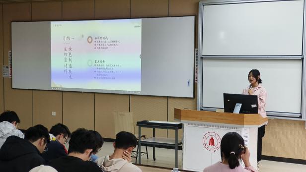 轻工科学与工程学院2023级104班的同学们结合国家发展新动向介绍了他们专业的不同研究领域,并对两个学院的同学在未来实现学科融合发展表示期待。