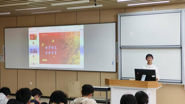 图为太阳集团tyc9728付昀鑫同学进行专业分享