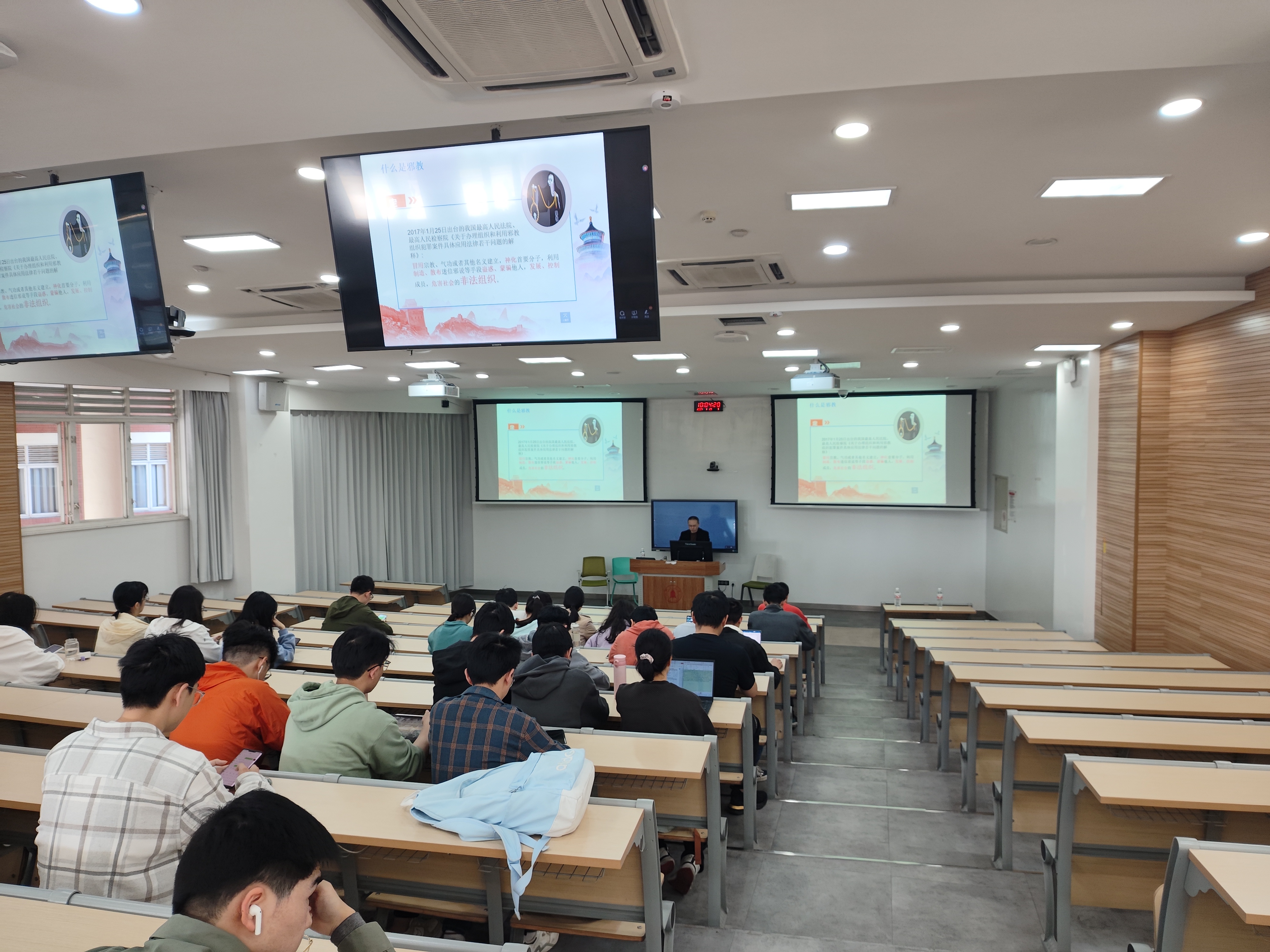3月29日上午我院本科毕业班形教课针对人工智能挑战和人才强国进行了授课,其中还包含了防范邪教相关内容。