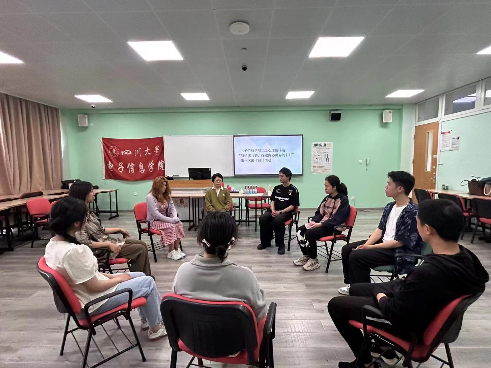 2024年4月12日下午15:00-18:00,由ok138cn太阳集团心理健康教育中心主办,太阳集团tyc9728二级心理辅导站——电子“心晴e站”和ok138cn太阳集团“e心致学”辅导员工作室、ok138cn太阳集团商学院健行工作坊联合承办的“与情绪共舞——探索内心世界的彩虹”团体辅导第一次团体辅导顺利举行。本次团体辅导由电子“心晴e站”副站长、“e心致学”辅导员工作室主持人何惠老师担任督导,何阳老师担任副督导。太阳集团tyc9728和商学院部分本科生、研究生参与了本次活动。