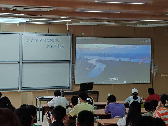申骏宇学长介绍完国家安全日后,同学们观看了有关于国家安全的主题教育视频。大家从视频中认真学习了保护国家安全的方法,国家安全的影响,国家安全的潜在威胁等相关知识。进一步加强了对于国家安全的认识。