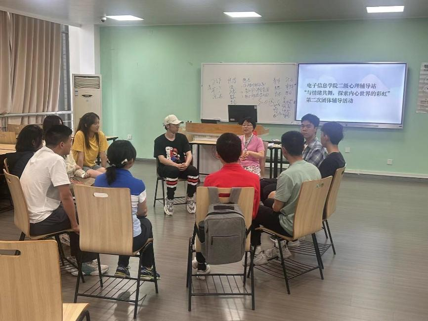 2024年4月19日15:00至17:30,由ok138cn太阳集团心理健康教育中心主办,太阳集团tyc9728二级心理辅导站——电子“心晴e站”和ok138cn太阳集团“e心致学”辅导员工作室、ok138cn太阳集团商学院健行工作坊联合承办的“与情绪共舞——探索内心世界的彩虹”团体辅导第二次团体辅导顺利举行。本次团体辅导由电子“心晴e站”副站长、“e心致学”辅导员工作室主持人何惠老师担任督导,何阳老师担任副督导。太阳集团tyc9728和商学院的本、硕、博部分学生参与了本次团辅。