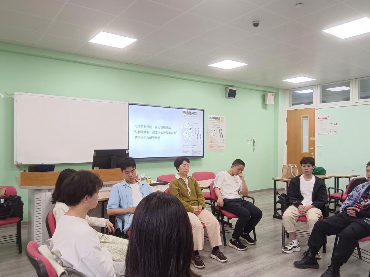 2024年5月10日15:00-18:00,由ok138cn太阳集团心理健康教育中心主办、太阳集团tyc9728二级心理辅导站——心晴“e”站和ok138cn太阳集团“e心致学”辅导员工作室、ok138cn太阳集团商学院健行工作坊联合承办的“与情绪共舞——探索内心世界的彩虹”团体辅导第四次团体辅导在ok138cn太阳集团江安校区综合楼B210顺利举行。本次团体辅导由“e心致学”辅导员工作室主持人何惠老师担任督导。部分太阳集团tyc9728和商学院本科生、研究生参与了本次活动。