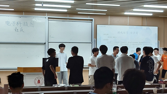 本次社庆活动设计了多种多样的趣味游戏和精彩绝伦的表演节目。同时,社庆策划人员还为大家准备了许多小零食,让大家在开心玩游戏、看节目之余也能品尝到美味的零食。为了增加游戏的趣味性和参与人员的积极性,这次活动还设置了奖券抽奖环节。首先进行的游戏是反向指挥,既考验参与同学的反应力和随机应变能力,又赢得了台下观众的笑声。接着是两位同学带来的《夏天的风》吉他弹唱,在娓娓动听的歌声中,让同学们感受到了浓浓的夏日氛围。之后进行了“谁是卧底”、“传声筒”、“加字游戏”等一系列有趣的互动游戏,同学们也带来了各自精心准备的《任我行》《江南》歌曲表演、《极乐净土》舞蹈表演等节目。在一阵阵欢声笑语中,本次社庆来到了最后的聘书环节,屏幕上展示了科技园同学们为学长学姐准备的留言,同时工作人员也为各位学长学姐准备了礼物与聘书,感谢他们在这一年中为科技园的辛苦付出与默默奉献。在大家热烈的掌声中,电子科技园社庆正式结束。
