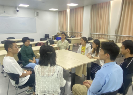 图四:何惠老师与各部门部长、副部长讨论交流