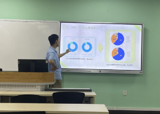 接下来,心理辅导站办公室、宣传部和沁心书会的部长发布了各部门的工作总结。部长们对部门成员在工作中的表现表示肯定,鼓励部员们再接再厉,同时也提出了部门未来工作的改进措施。