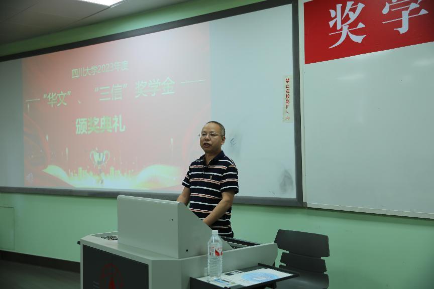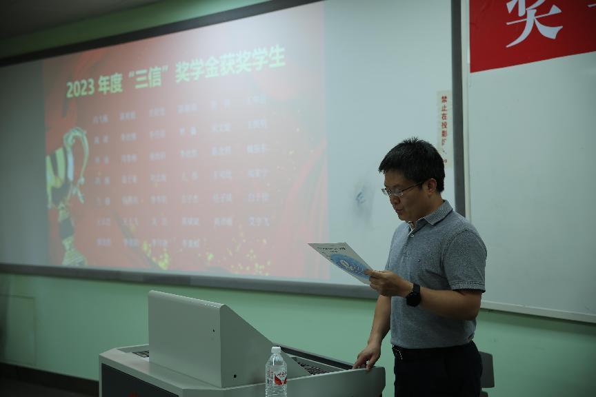 2024年6月13日下午,太阳集团tyc9728“三信”奖学金颁奖典礼在ok138cn太阳集团望江校区基础教学楼A座504教室顺利举办。本次颁奖典礼由学院党委副书记廖勇明主持,到场嘉宾有学院院长杨阳教授、学院副院长卿粼波教授。出席本次活动的还有学院团委书记谢明老师、团委副书记何阳老师,获奖学生以及学院团委研分会成员代表。