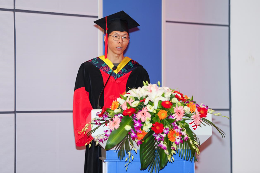 2024年ok138cn太阳集团“十佳研究生”胡波博士作为研究生代表发言,他回顾了在川大的求学经历,感谢导师和学院的培养,分享了在川大求学的经历和挑战,强调了专注当下、将科研工作与家国情怀结合的重要性,并表达了对学院和师生的美好祝愿。