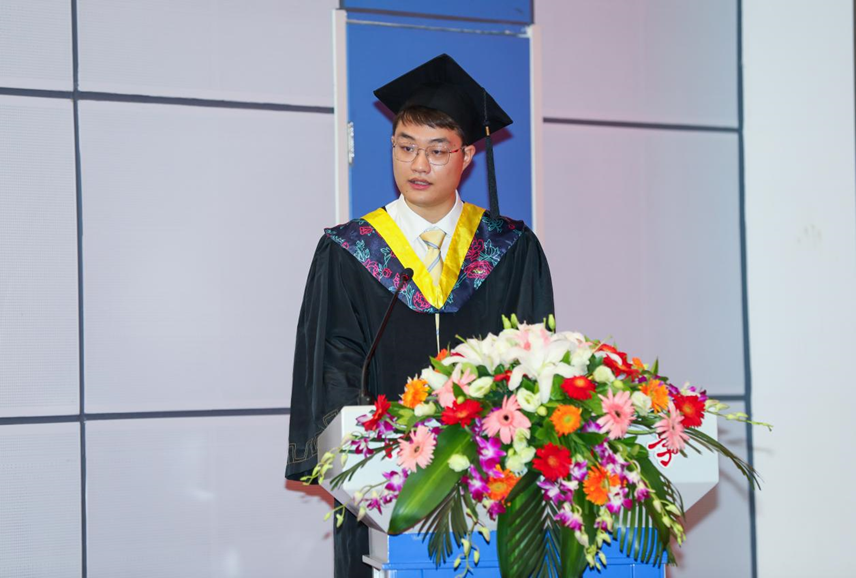 本科毕业生代表刘羽樊同学在发言中表达了对离开母校的不舍,他表示同学们将铭记川大的教导,认真践行 “海纳百川 有容乃大”的校训,在未来的人生赛道上披荆斩棘,奋力奔跑,不负时代,不负韶华,未来以优异的成绩骄傲地向母校报告。