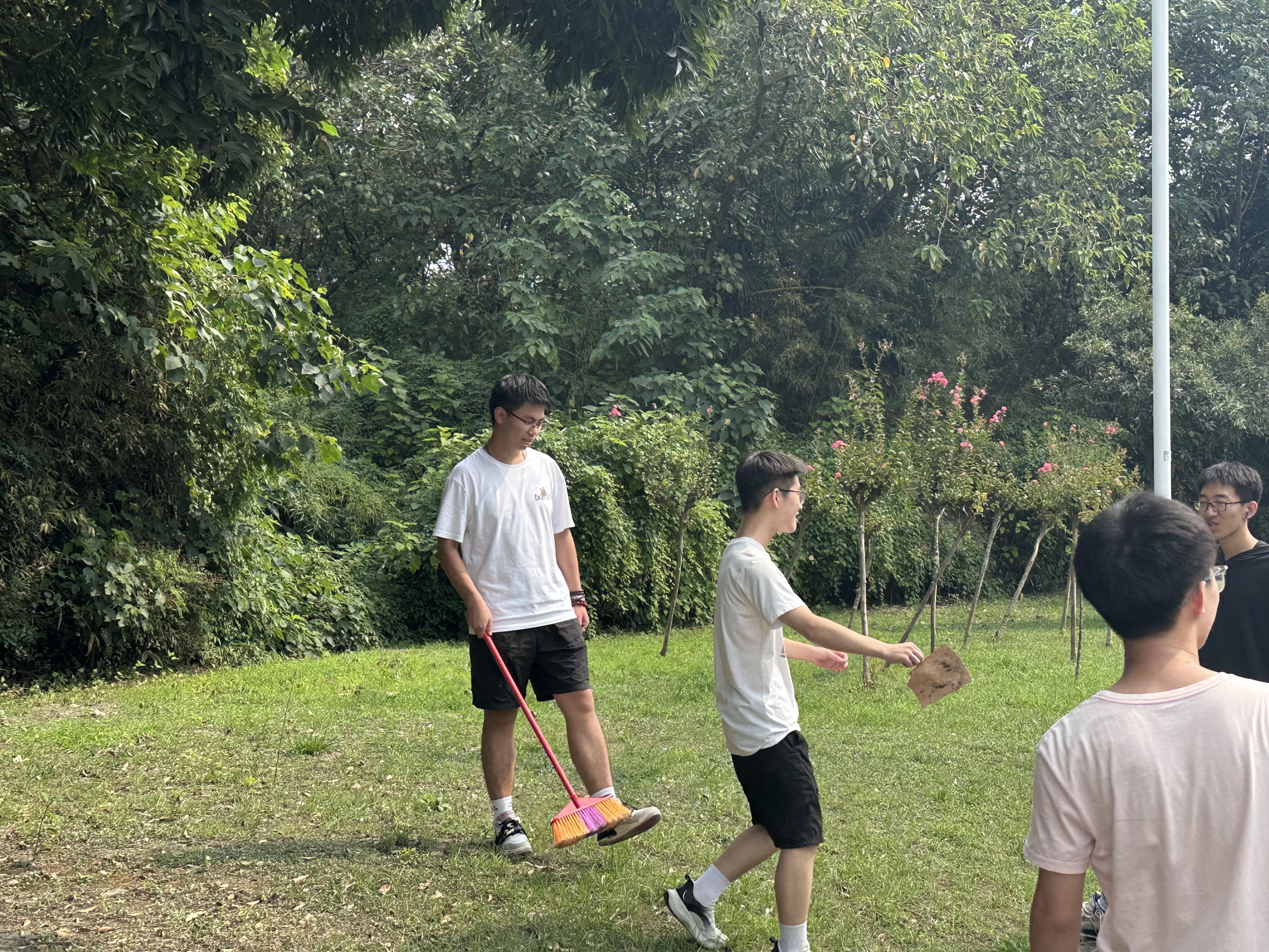 校园内,随处可见的是同学们忙碌而坚定的身影,每一个动作都透露着对校园的深情与爱护。同学们分工明确,合作无间。有的小组负责清理主干道两侧的垃圾与杂草,确保道路畅通无阻;有的则深入绿化带,仔细拾捡隐蔽处的废弃物,还原自然之美;还有的同学发挥专业特长,利用电子信息技术为活动制作宣传视频,记录下了这一难忘时刻,让劳动的精神通过网络传递得更远。