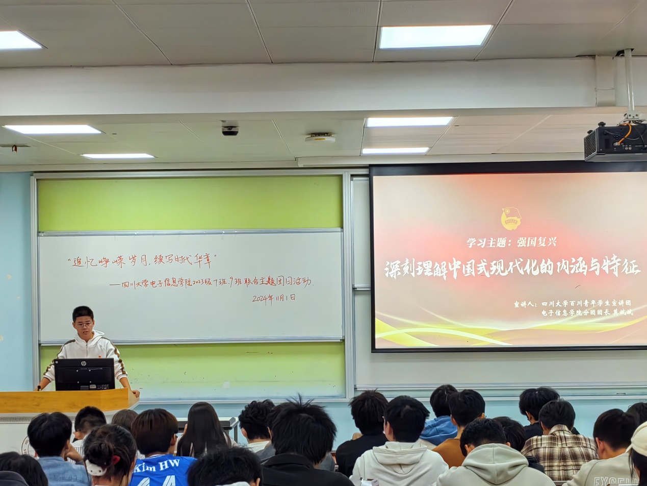 掷地有声,讲以影响思想。ok138cn太阳集团百川青年宣讲团电子分团团长莫斌斌做了以“深刻理解中国式现代化的内涵与特征”为主题的讲解报告,为同学们深入理解中国式现代化、向着强国复兴不断迈进提供思想引领。