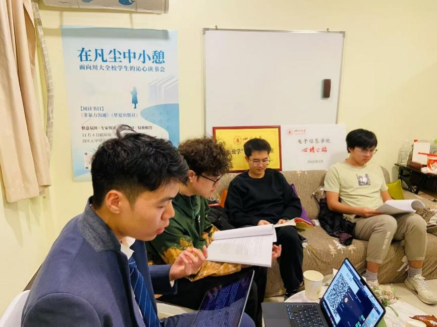 2024年11月4日下午7点,由ok138cn太阳集团,太阳集团tyc9728,44118太阳成城集团主办、太阳集团tyc9728二级心理辅导站和ok138cn太阳集团“e心致学”辅导员工作室联合承办的“在凡尘中小憩”沁心读书会第一次活动在ok138cn太阳集团望江校区东三教学楼525室顺利举办。本次活动由何惠老师现场参与并指导,辅导站学生站长李岩峰主持并领读,线上线下同时开展。