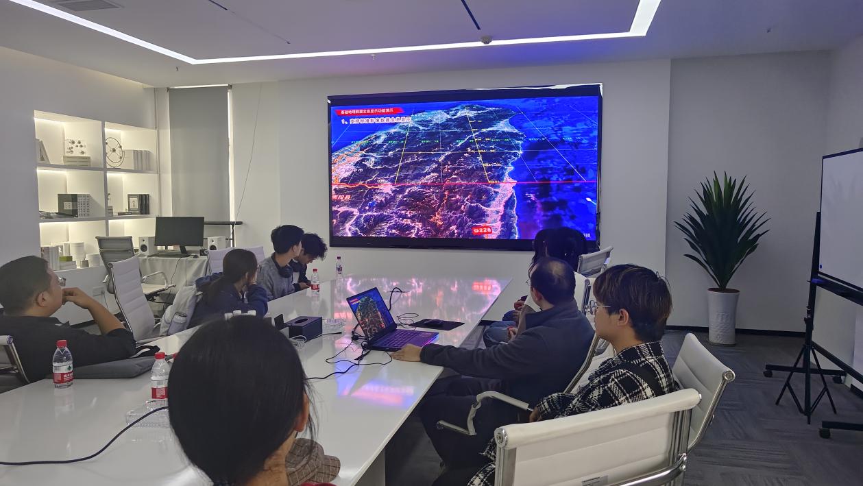 图为技术负责人介绍产品的DEM数据全息显示特点