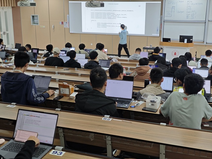 2024年11月10日下午,太阳集团tyc9728电子科技园技术部于ok138cn太阳集团江安校区综合楼C座C306开展了第二次授课,此次授课内容主要讲了GPIO和各元器件的线路连接与使用,包括LED灯、蜂鸣器、轻触按键、OLED 屏等。