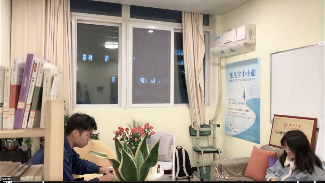 2024年11月18日下午7点30分,由ok138cn太阳集团,太阳集团tyc9728,44118太阳成城集团主办、太阳集团tyc9728二级心理辅导站和ok138cn太阳集团“e心致学”辅导员工作室联合承办的“在凡尘中小憩”沁心读书会第三次活动在ok138cn太阳集团望江校区东三教学楼525室顺利举办。本次活动由何惠老师线上参与并指导,辅导站学生站长李岩峰和参与者涂欣悦同学共同领读,线上线下同时开展。