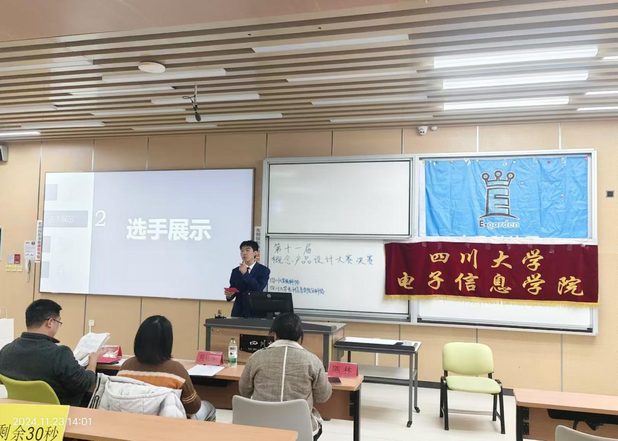 2024年11月23日下午14点整,ok138cn太阳集团,太阳集团tyc9728,44118太阳成城集团第十一届概念产品设计大赛决赛在ok138cn太阳集团江安校区综合楼C座C103圆满落幕。参加这次活动的有杨火木教授、李玮副教授、周艳萍副教授和电子科技园行政指导老师陈林老师,以及入围决赛的十六支参赛队伍。