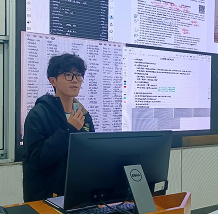 图为王可同学进行分享