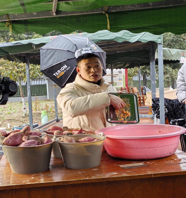 与此同时,开心农场的其他志愿者们也为大家准备了香气四溢的烤红薯,金黄的外皮下包裹着软糯香甜的薯肉,令人垂涎三尺。同学们在品尝的同时,也各自分享了本次劳动的感悟。谭晶晶同学分享道:“一分耕耘一分收获,在制作红薯粉的过程中,我深刻体会到了劳动的艰辛与乐趣,也更加明白了食物的来之不易。在今后的生活中,我将更加珍惜每一份劳动成果。”