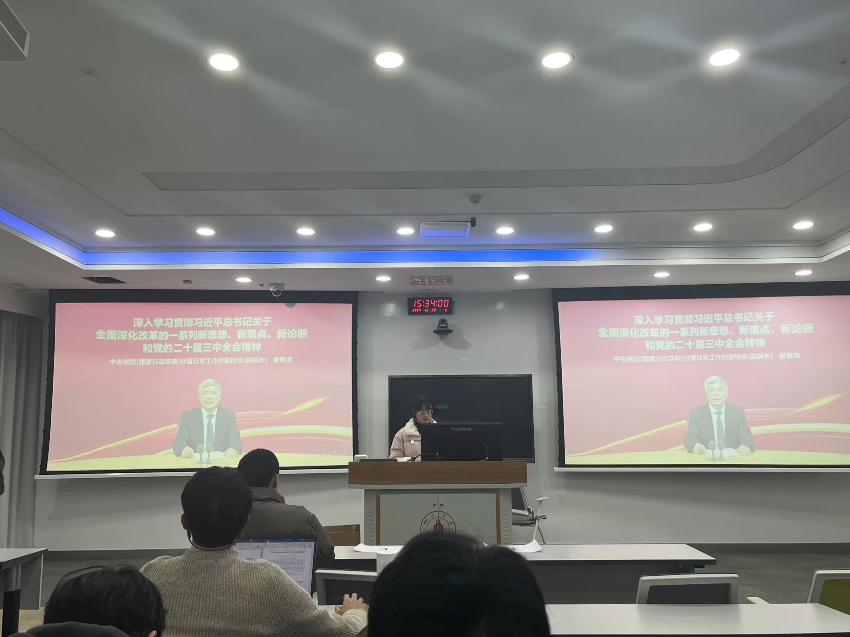 然后,秦嘉忆同志带领大家收看中央党校谢春涛副校长的关于深入学习贯彻习近平总书记关于全面深化改革的一系列新思想、新观点、新论断和党的二十届三中全会精神的专题报告。此次报告帮助党员和积极分子深入了解并消化党课内容,更好地将理论与实际相结合。