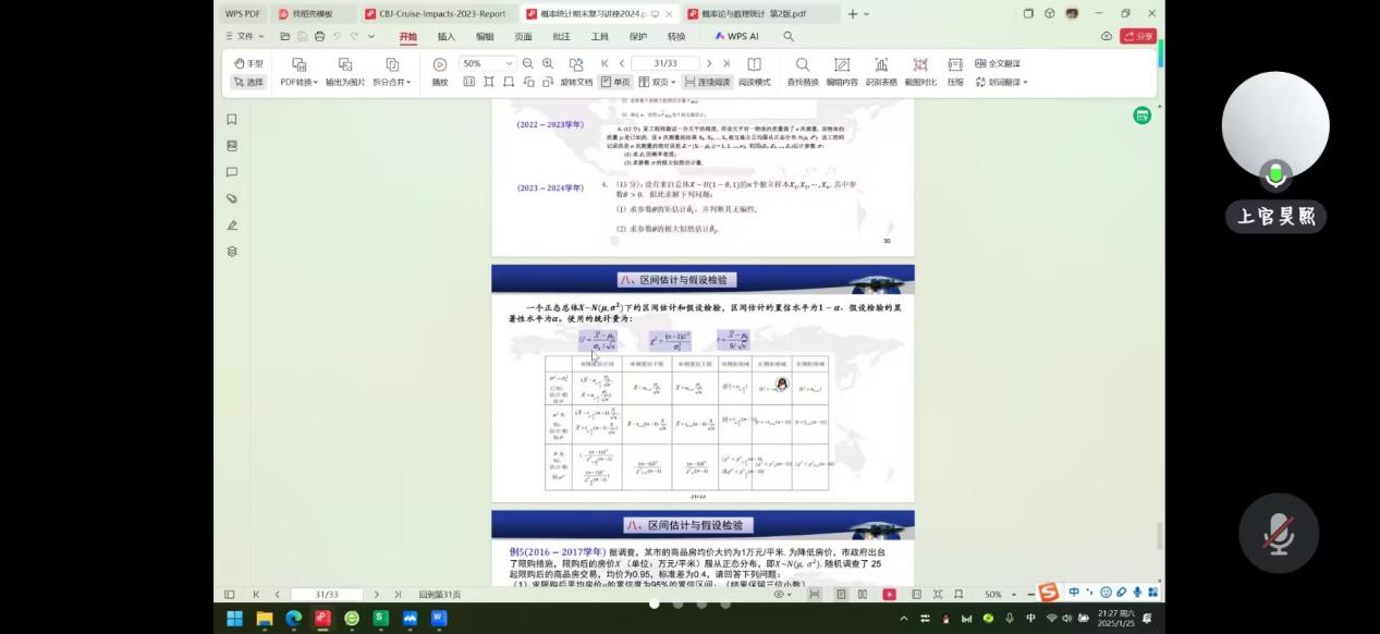 最后一场是“概率统计”分享会,分享人是代佳硕、张义、上官昊熙三位同学。三位同学均详细分享了自己在复习过程中总结出的考试重点和难点,并为同学们细致的讲解,结合生动的演示和经典的例题,大家渐渐领悟到这门学科的深刻内涵,同时也将慢慢形成自己的理解。三位同学在长达 30分钟的分享过程中不仅深入细致地剖析了概率统计这门学科复杂的知识体系,还毫无保留地分享了自己在长期学习过程中总结出的高效复习方法。最后,张义同学建议大家加强计算能力,避免犯低级错误。