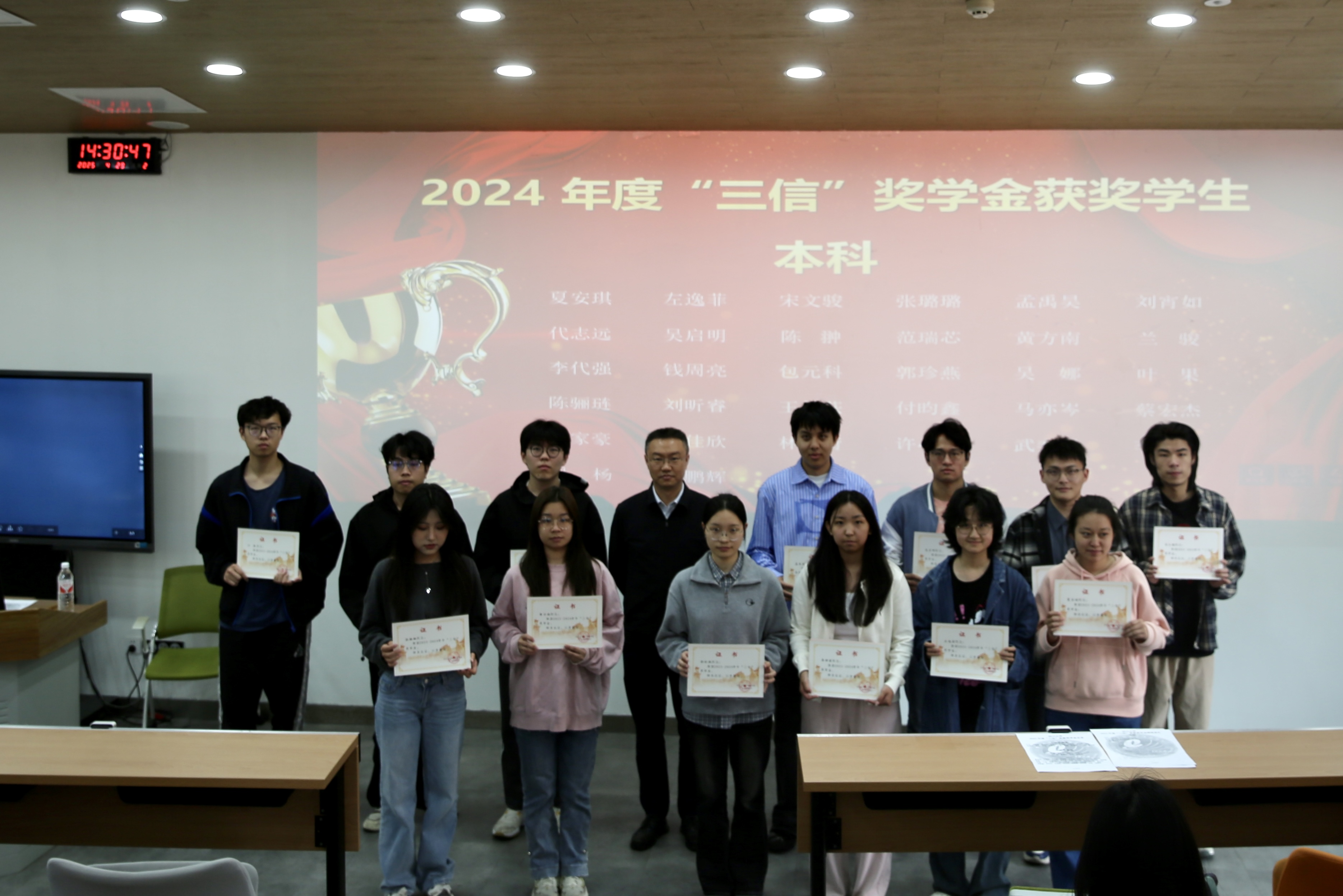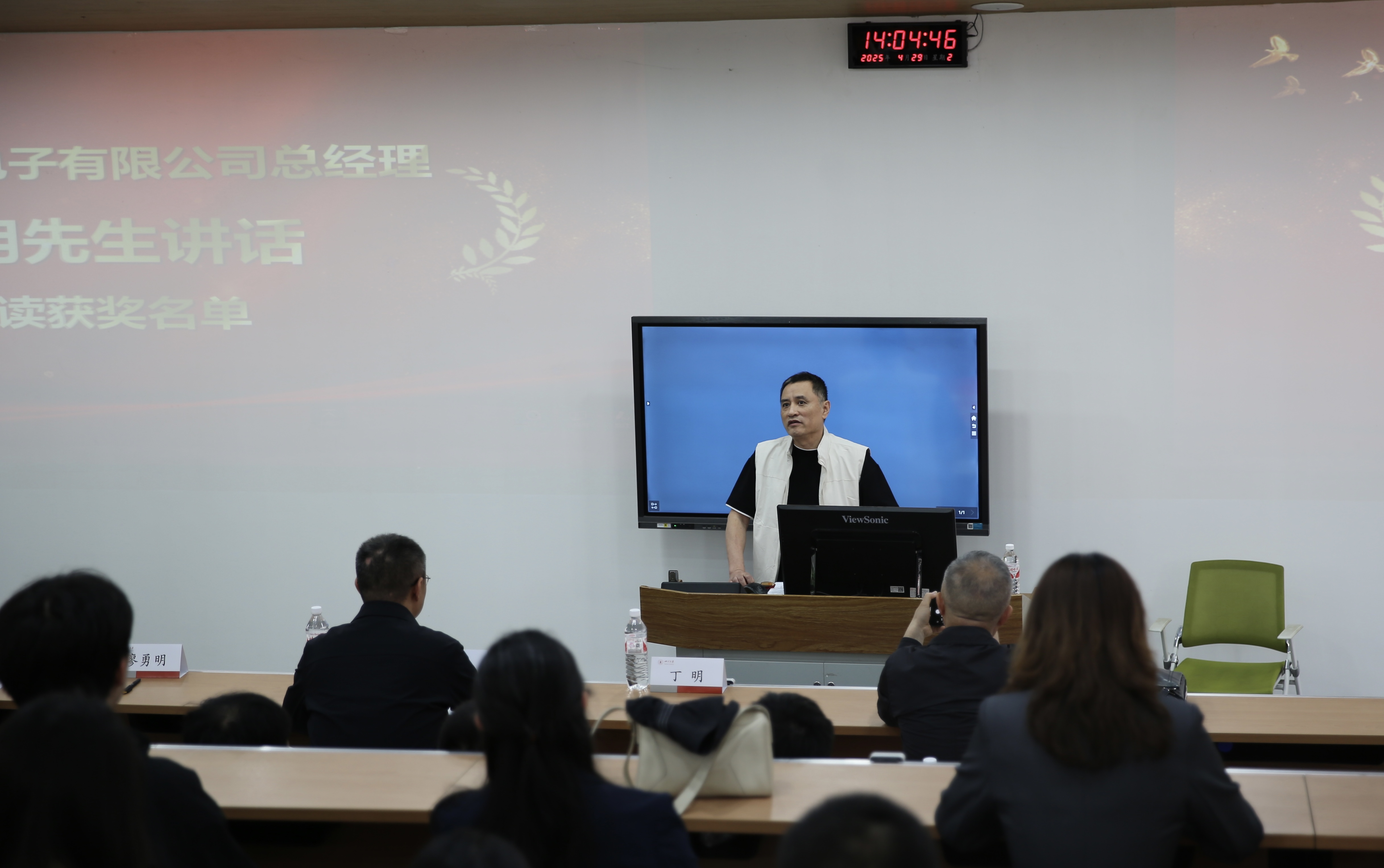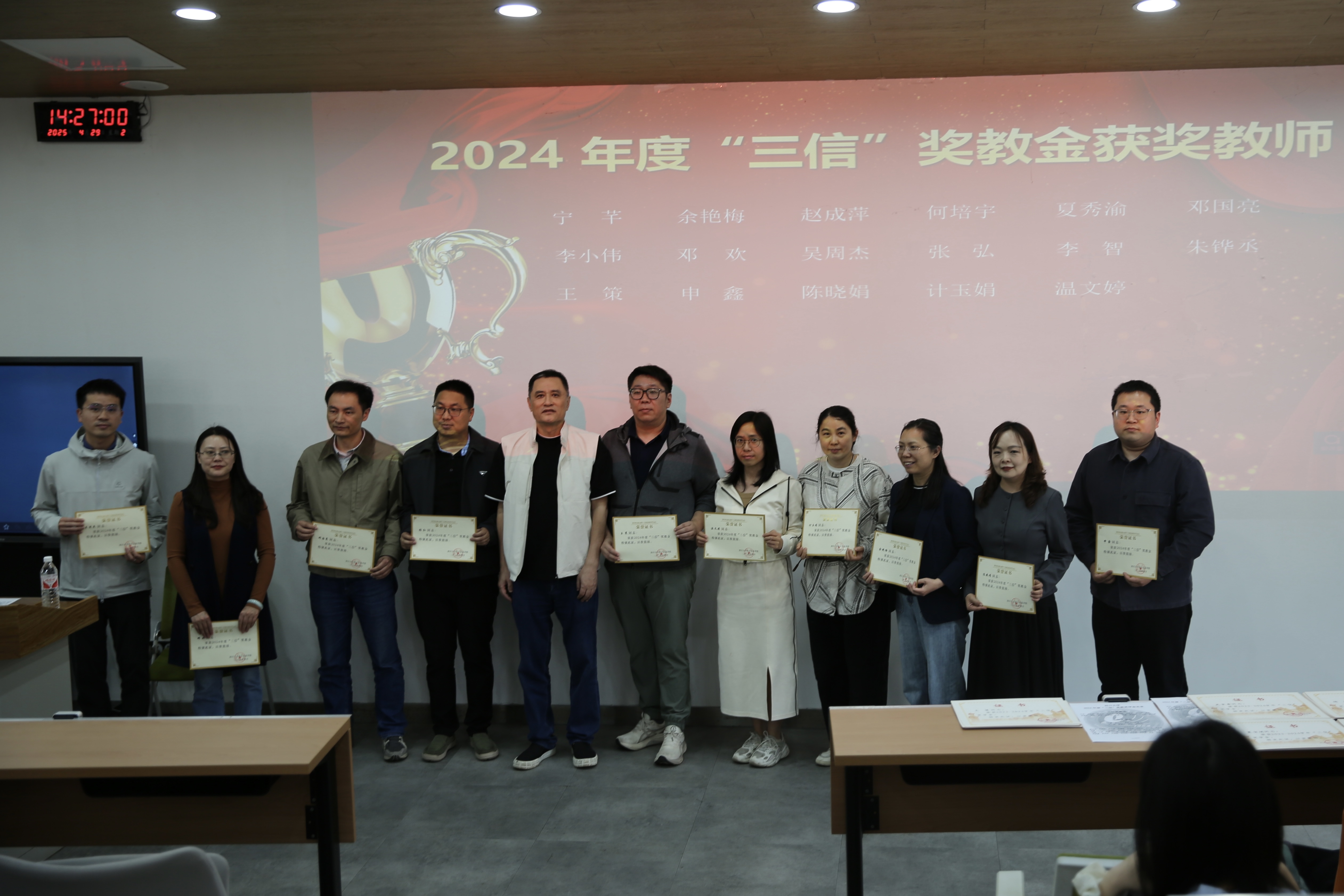 2025年4月29日下午14:00,太阳集团tyc9728“三信”奖教奖学金颁奖典礼在ok138cn太阳集团望江校区基础教学楼C座101教室顺利举行。本次颁奖典礼由学院党委副书记廖勇明主持,到场嘉宾有重庆三信电子股份有限公司总经理丁明先生、重庆三信电子股份有限公司董事吴峻先生和我院院长杨阳教授。出席本次活动的还有获奖老师、获奖学生以及学院学生科科长谢老师和学院团委研分会成员代表。
