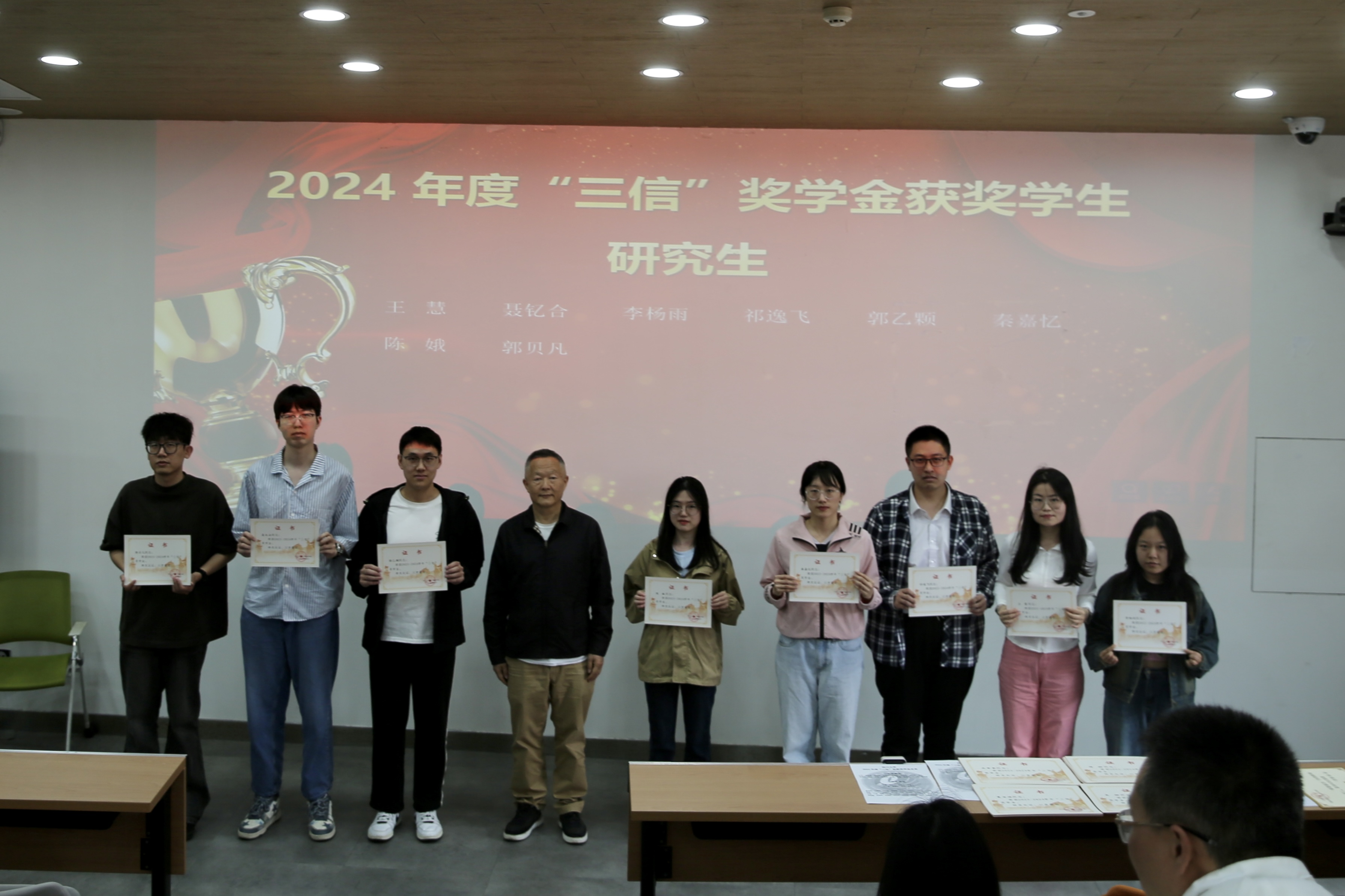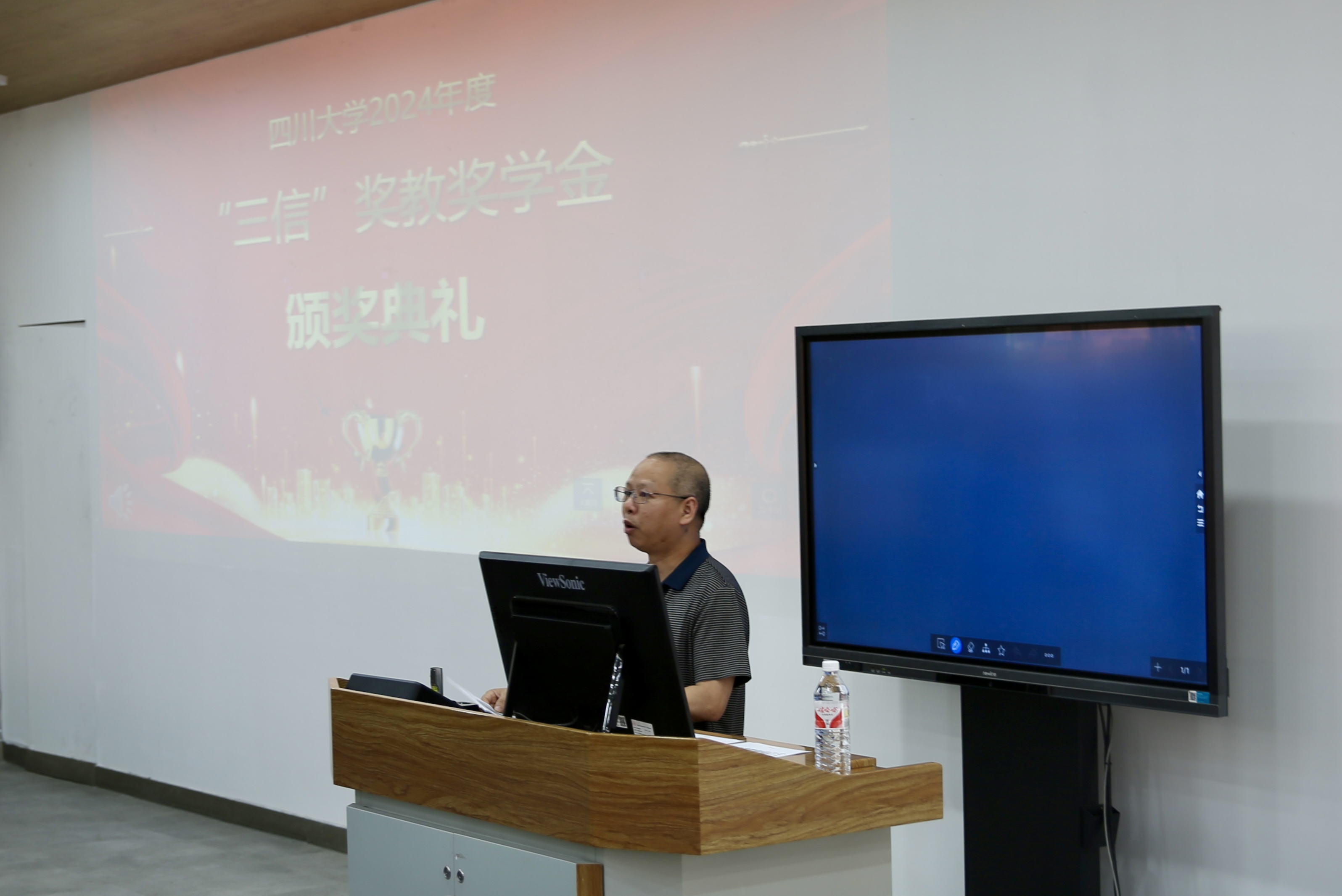 随着嘹亮的国歌声响起,典礼正式拉开帷幕。首先由丁明总经理讲话,他详细介绍了三信公司在国际国内社会经济发展的大背景下,不断克服困难、改革创新,适应行业发展持续取得优良业绩的现状,并宣读了2024年度“三信”奖教奖学金获奖名单。随后兰骏同学作为获奖代表发表获奖感言,他对学院的培养和“三信”公司的捐赠助学表示感谢,表示自己作为一名川大电子人,未来将继续努力学习并掌握扎实基础,勇于创新,为国家和社会做出更多贡献。然后举行了颁奖仪式,颁奖嘉宾、领导为获奖师生颁发证书,并合影留念。