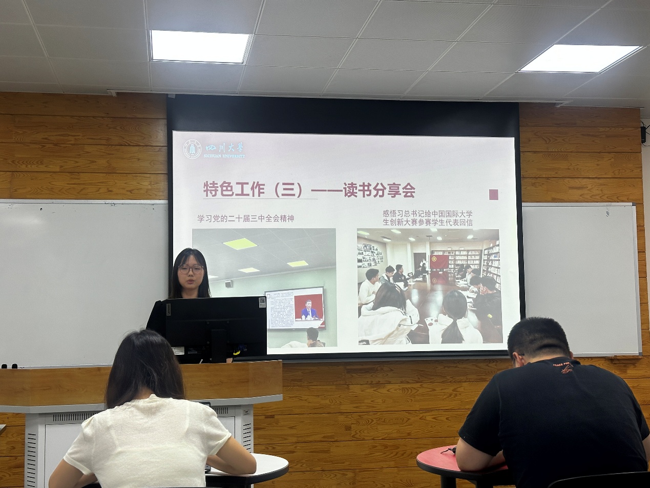 图为党支部助理钟佳秀同学进行述职汇报