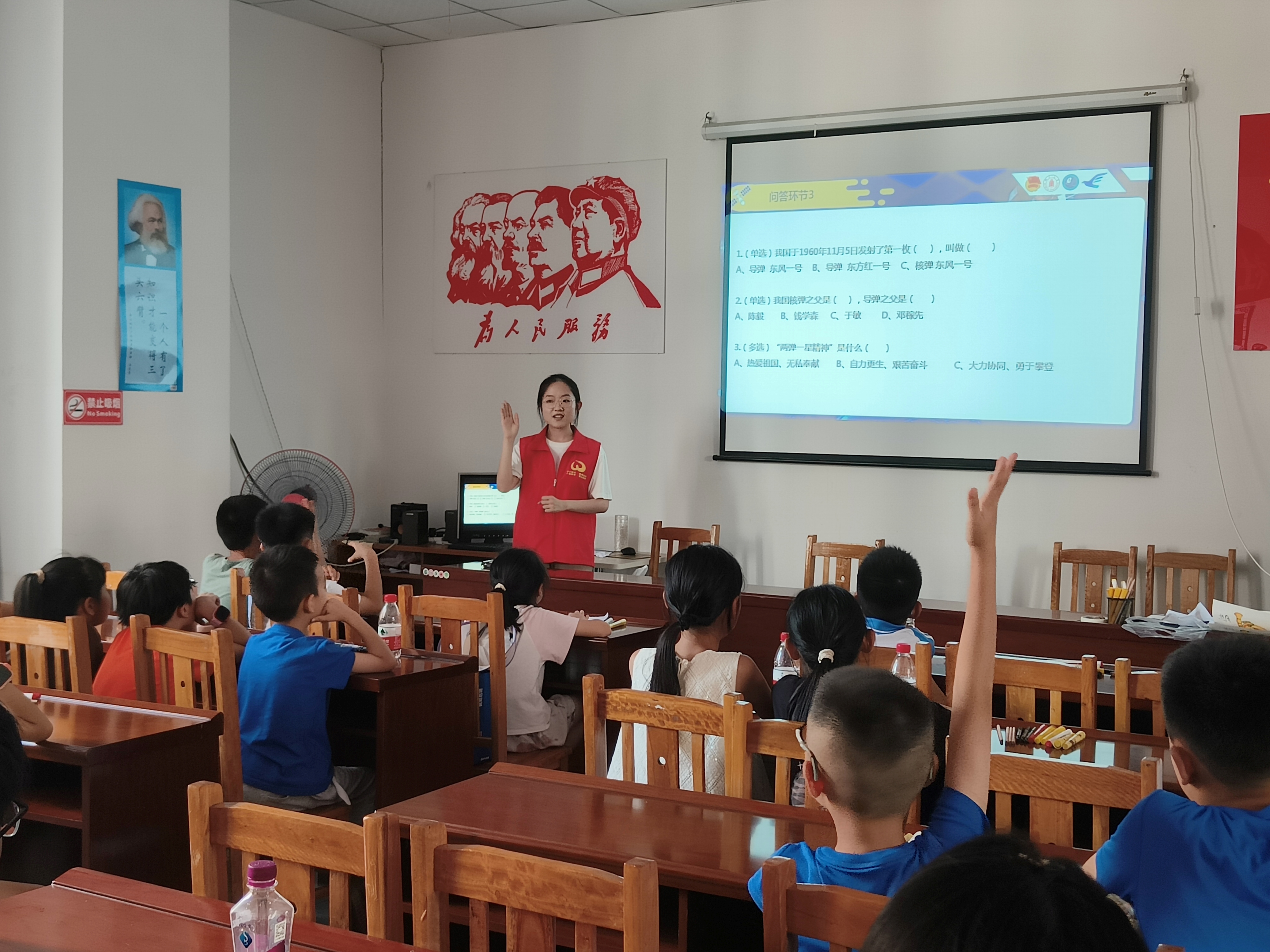 八月,ok138cn太阳集团“芯”火相传暑期社会实践团的成员带着在实践沃土中淬炼出的感悟,怀揣着让精神力量跨越山海的热忱,回到家乡,在贵州、四川、内蒙古等地面向小学生、高中生、大学生开展“两弹一星”精神系列宣讲4场,覆盖人数超两百人。
