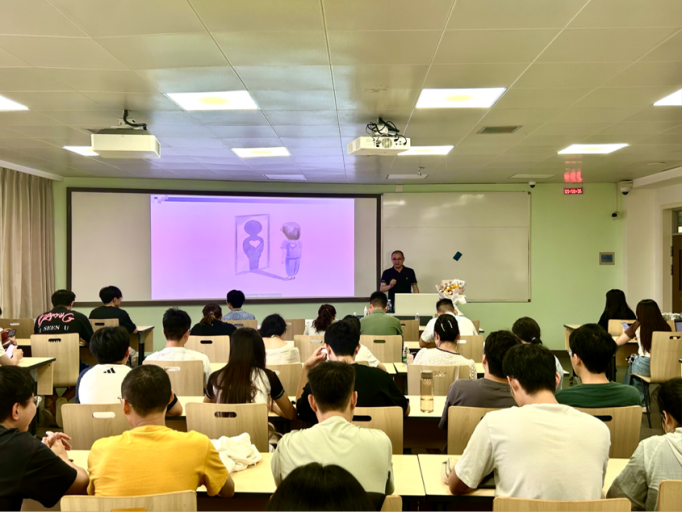 图二:舒跃育教授作分享,师生认真倾听