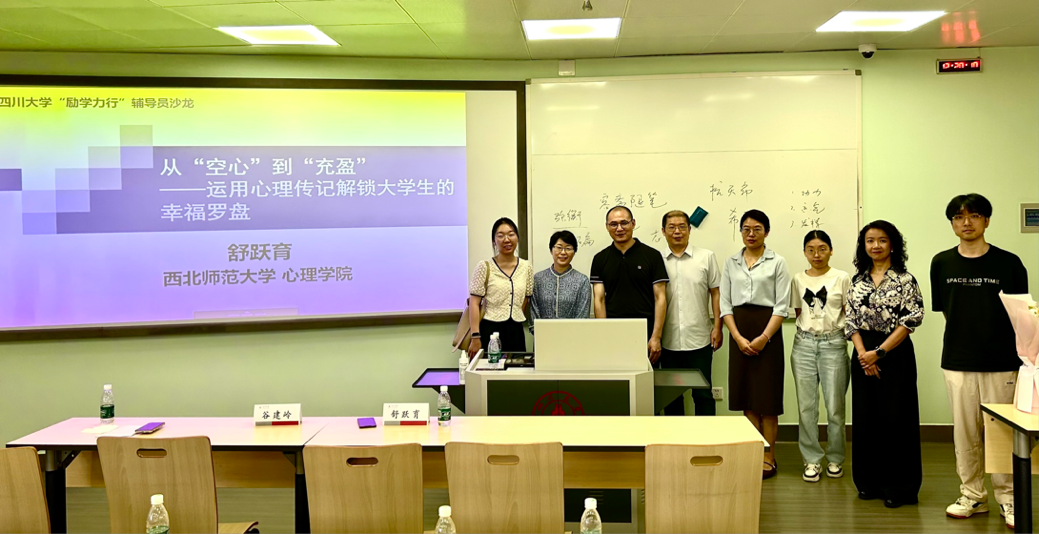 9月12日上午9:30至12:00,由ok138cn太阳集团党委学生工作部(处)指导,ok138cn太阳集团“e心致学”辅导员工作室与太阳集团tyc9728二级心理辅导站心晴“e”站联合主办的辅导员沙龙,在望江校区基础教学楼A504顺利开展。本次沙龙特邀西北师范大学心理学院舒跃育教授主讲,主题为“从‘空心’到‘充盈’:运用心理传记解锁大学生的幸福罗盘”,活动由何惠老师主持,70余名师生参与沙龙。