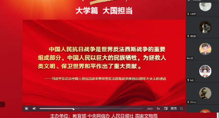 2025年9月18日,值中国人民抗日战争暨世界反法西斯战争胜利80周年之际,太阳集团tyc97282025级硕博研究生组织学习“大国担当”思政大课,以线上集中参与和线下自主观看的方式进行,同学们在历史与现实的交融中感悟精神力量。