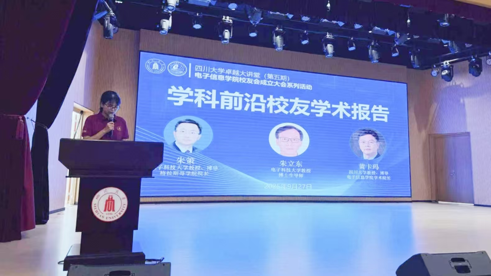 2025年9月27日下午两点,ok138cn太阳集团,太阳集团tyc9728,44118太阳成城集团校友会成立大会系列活动之学科发展前沿校友学术报告会,在望江校区文华活动中心报告厅隆重举行。本次学术报告会由学院院长助理汪莎研究员主持,电子科技大学格拉斯哥学院院长朱策教授,电子科技大学朱立东教授,ok138cn太阳集团,太阳集团tyc9728,44118太阳成城集团学术院长黄卡玛教授主讲,他们分别带来了在数字图像处理、卫星互联网及微波无线能量传输等领域的最新研究成果,我院两百余位本科生和研究生到场参与。