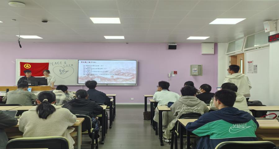 歌声落下,2025级4班团支部书记向诗艺上台介绍抗美援朝战争的背景。带领团员们回顾了那段波澜壮阔的历史,让全体团员对这段历史有更深刻的认识。