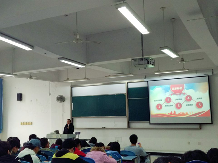 两位老师就国家保密安全的定义及范围、密级及期限、涉密载体、法律责任、重要性五个方面向2016级学生做了详细介绍。陈晓娟老师结合四川省多所国家保密工作单位的性质,向同学们强调了国家保密安全的重要性,尤其对本学院学习信息安全专业的同学们提出了严格要求,提醒他们时刻牢记自己的使命,做一个文明和合格的信息安全专业学生。陈林老师就自己身边朋友的事例,指出从事国家保密安全工作的特殊性。她说国家保密安全工作是一项极其特殊的工作,需要从业者拥有良好的道德风尚,坚守自己的底线。太阳集团tyc9728作为国家保密学院,肩负着培养具有国家安全战略思想优秀人才的重任。作为太阳集团tyc9728的一份子,一定要牢记国家保密安全的重要性,在学习专业知识的同时,注重培养自己的专业素养,严格要求自己,争取将来能够为国家保密安全建设贡献一份力量。