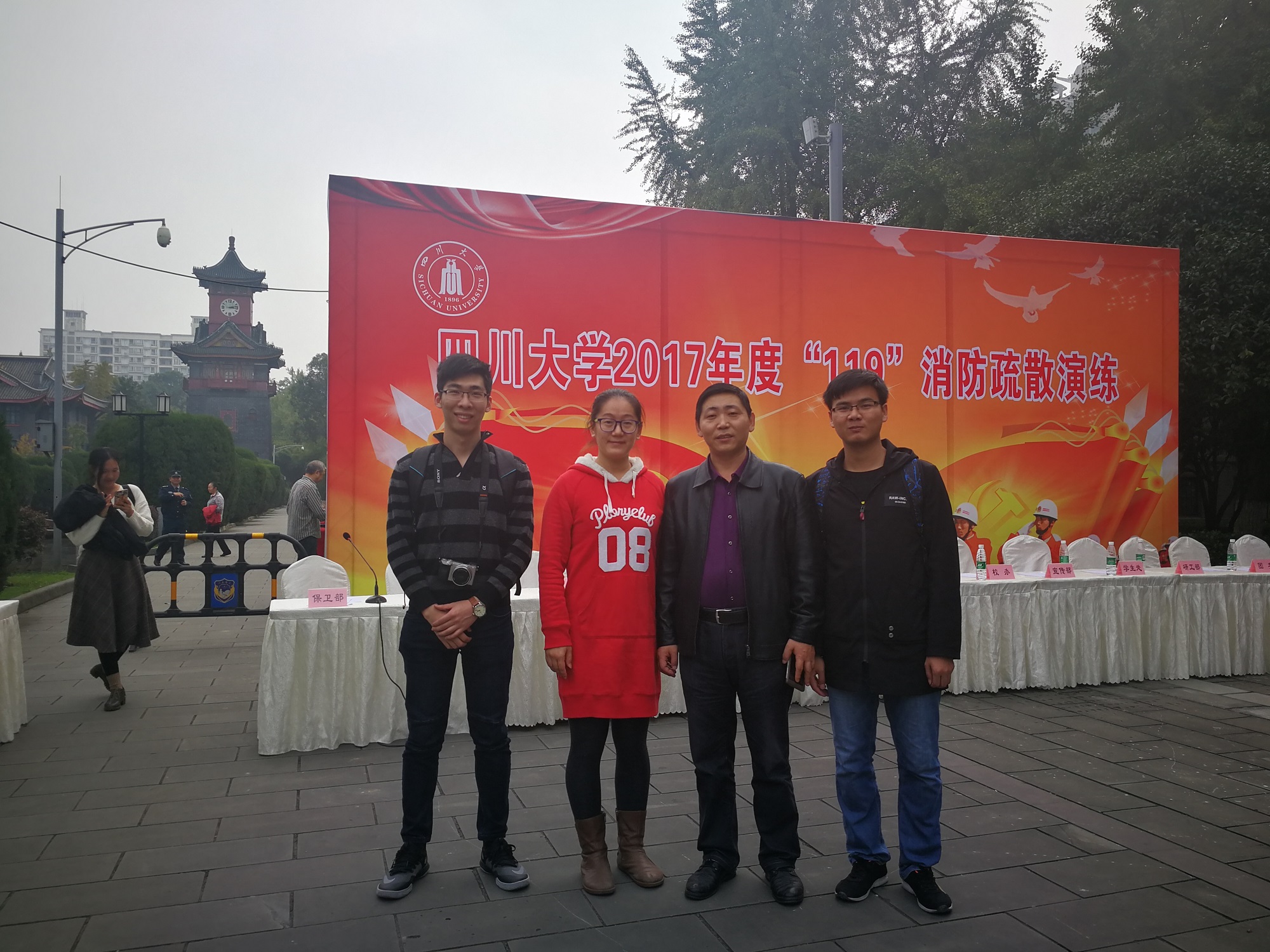 2017年11月9日下午2时,ok138cn太阳集团在华西校区第九教学楼举行了2017年度“119”应急疏散演习。校党委副书记、副校长李向成,成都市公安消防支队胥瑜中校,以及学校相关部处负责人观摩了此次演练。我院党委陈笃海副书记,2014级辅导员吴秀玲老师,学生代表徐展鹏、陈班班参加本次演练。