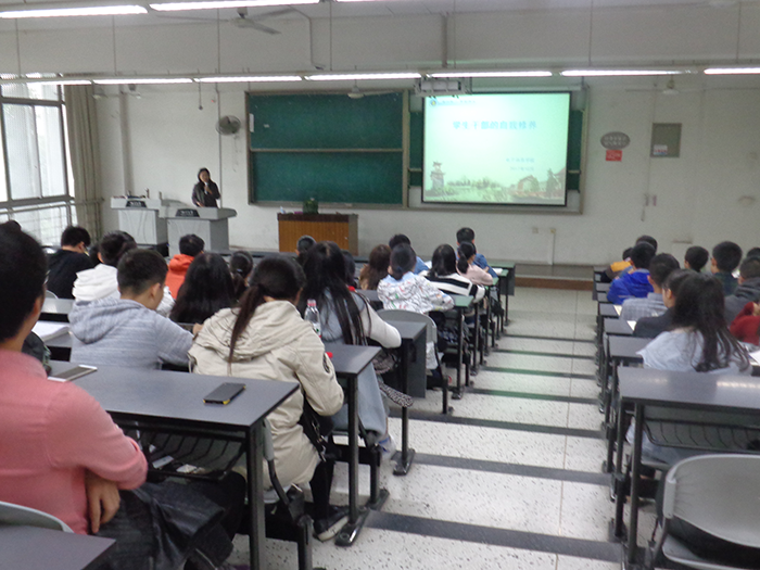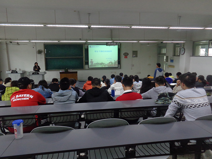 会上,陈林老师首先向台下学生干部提出“你认为作为一名学生干部应该如何开展工作”的问题。带着这个问题,陈林老师开始从多方面进行培训。首先,她就学生干部自我定位问题进行了必要的说明。她指出,团学2017级干部由于正处于干事干部过渡时期,存在部门整体工作运行较混乱的问题。同时,部长老师之间、部长干事之间沟通不到位,各部门活动推广不到位,部长对待部门活动不积极等问题都必须引起足够的重视。随后,她向台下各位学生干部展示了历届优秀部长的工作经验,并告诉各位学生干部要像他们学习,恪尽职守,培养奉献精神,纠正“做学生工作不利于学业”的错误观念,充分利用自己在工作中收获的优势和资源,找准定位,提升自我。她还强调,学生工作不仅能提高自己的工作效率,还能锻炼与人沟通交往的能力,是大学生活中一段珍贵的经历。最后,陈林老师提出,希望在接下来的时间里,团学各部门能够在继承团学往年优良传统的同时,勇于创新,开展更加丰富多彩的学院文化活动,起到服务全院学生的作用!