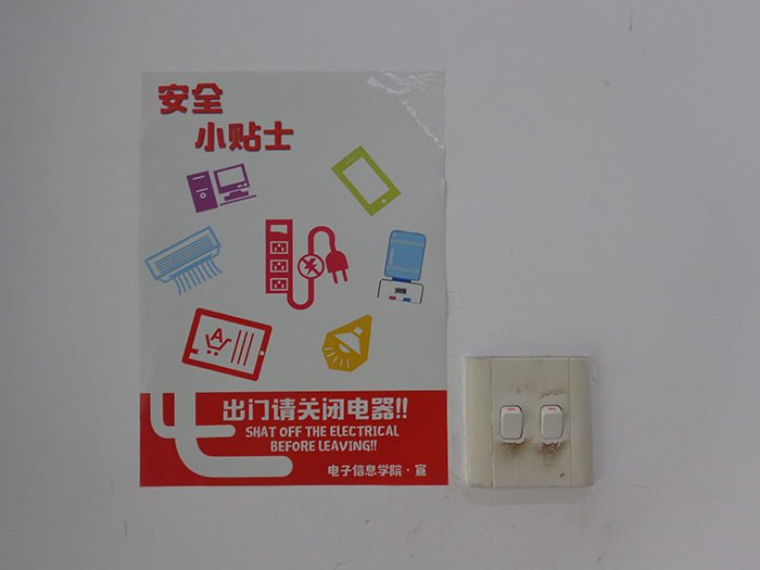 早在2017年10月12日太阳集团tyc9728相关领导和老师在走访寝室过程中,就发现了寝室内存在的诸多用电不安全现象,例如饮水机无水时仍处于插电状态;为了一时方便将插线板挂在床边的栏杆上等。太阳集团tyc9728党委邰明松书记表示这些用电行为极易引起火灾,冬季来临,大家更应该注意寝室用电安全。太阳集团tyc97282017级辅导员陈林老师也提议加大寝室用电安全管理力度,重点关注学生的安全问题。根据此次走访调查的结果,太阳集团tyc9728决定开展寝室用电安全宣传画张贴行动。