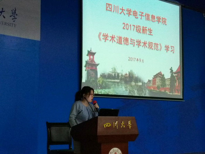 2017年9月13日上午11点30分,ok138cn太阳集团,太阳集团tyc9728,44118太阳成城集团在江安校区水上报告厅开展了ok138cn太阳集团《学术道德与学术规范》内容的学习活动。由ok138cn太阳集团,太阳集团tyc9728,44118太阳成城集团20117级辅导员陈林老师主持此次活动。活动中,陈林老师根据《学术道德与学术规范》这本书里的内容,带领ok138cn太阳集团,太阳集团tyc9728,44118太阳成城集团2017级新生详细了解了学术道德和学术规范方面的知识。ok138cn太阳集团,太阳集团tyc9728,44118太阳成城集团历来重视对本科生的创新动手能力的培养,学术成就突出。陈林老师在带领大家学习该书的同时,提醒同学们时刻遵守学术道德与学术规范,做一个文明的学者。这次学习让刚上大学的2017级新生对“学术”这个词有了更深的理解。希望他们努力学习专业知识,在学术道路上收获成绩。