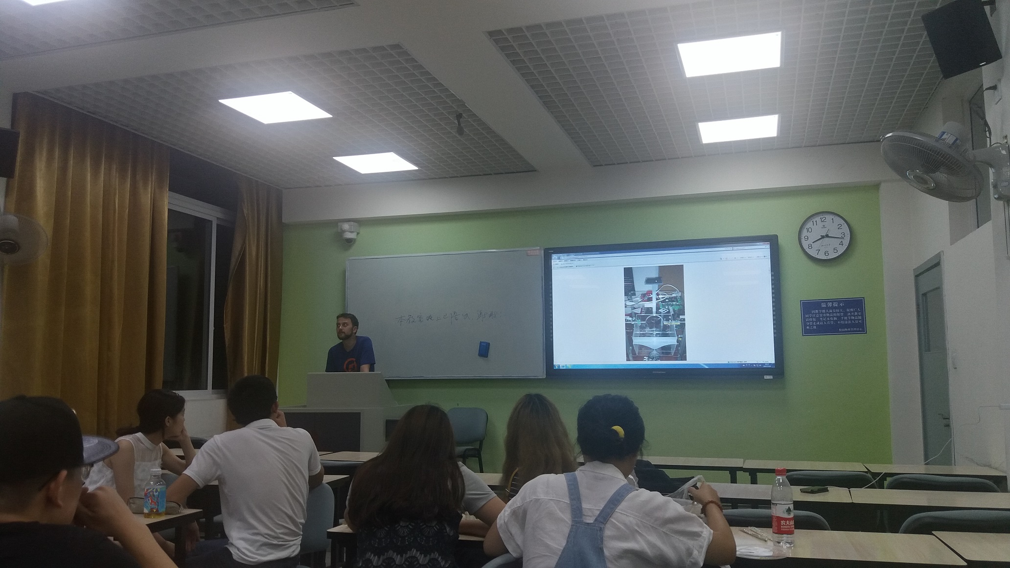 7月13日晚上7点,在望江校区三教107,参加交流营的中外同学结合自己的专业展开了相关学术论文讨论。在活动开始之前,突如其来的狂风暴雨并没有减少同学们对于参与此次研讨会的热情。研讨会的过程恰似这场雨可用“酣畅淋漓”来形容。